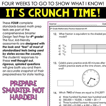 This collection of 4 Mathematics Prep-Tests for 4th grade is a part of the comprehensive Smarter Design Test Prep Series. It provides you with FOUR complete, common core aligned, math prep tests that have been carefully constructed with the rigors of today’s standardized tests in mind.