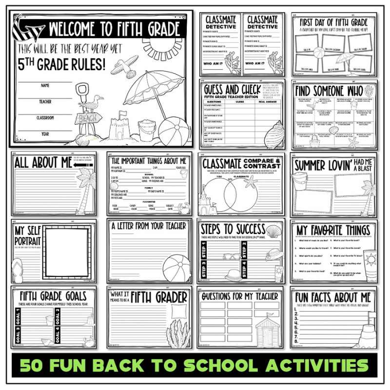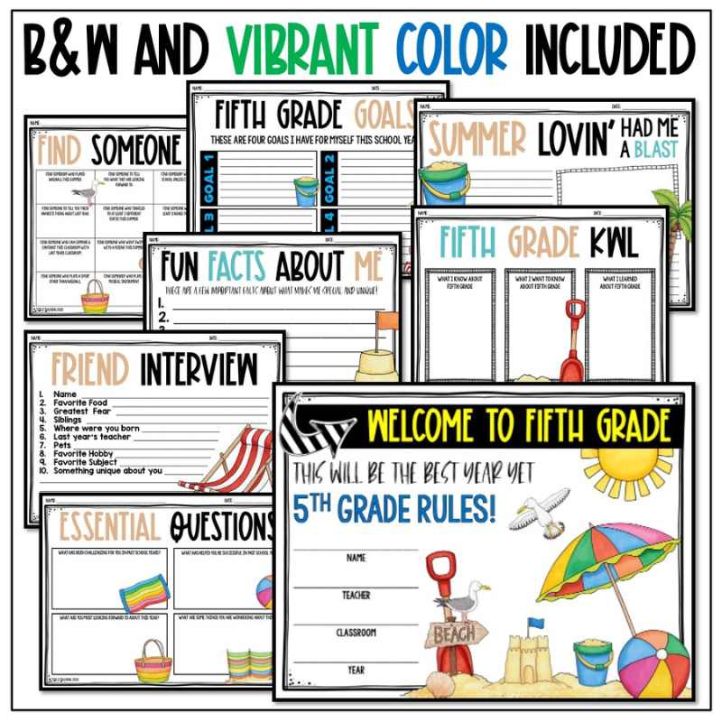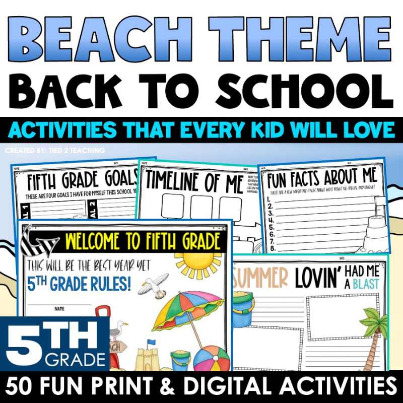 The beginning of the year and the first day of school is such a fun and exciting time in 5th grade! These back to school BEACH themed activities, specifically formatted for 5th grade, help to alleviate those first day jitters. Use these printables at the beginning of the year to engage your students from day one! Get to know each of your new students through these BEACH back to school activities! Start the new school year with a smile!
