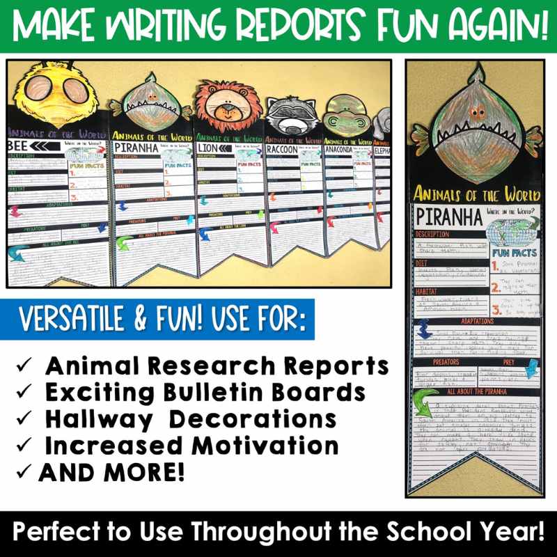 These Animals Report Pennant Banners come with over 100 fun pennants for displaying your animal research project on the amazing animals of our world. Perfect for any time of the year, these pennants are a great way to supplement your science instruction as well as help your students organize their research. Save time by integrating your science and ELA instruction!