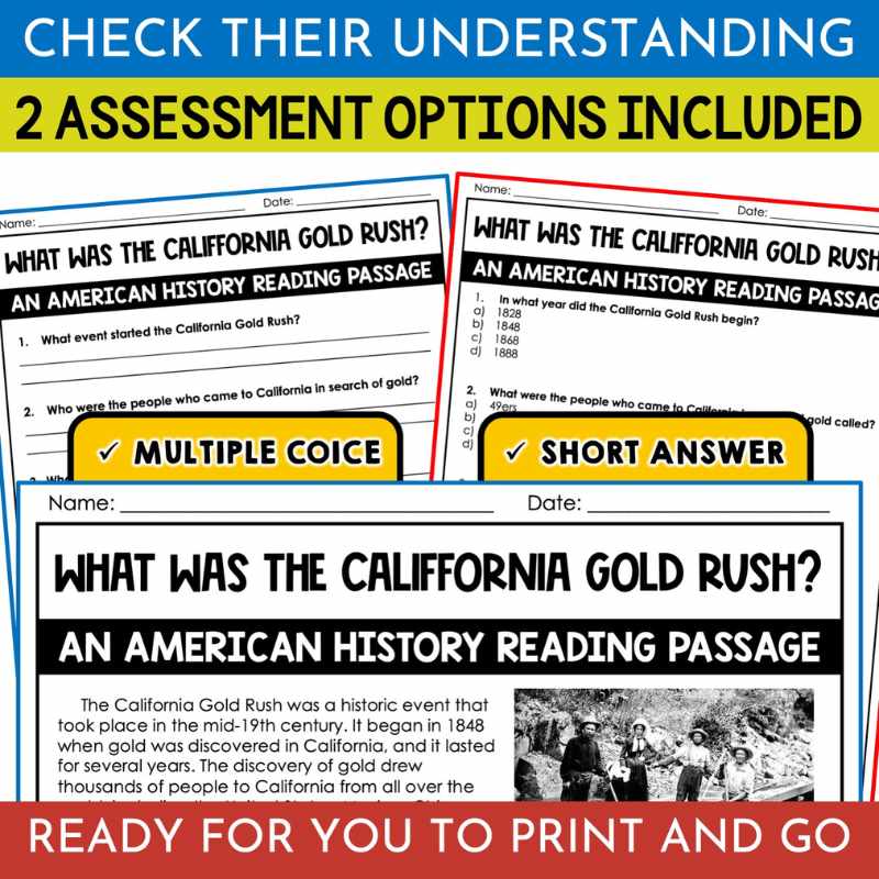 Elevate your classroom experience with this California Gold Rush Reading Passage, enhancing your students’ understanding of this significant chapter in American history while fostering their literacy skills. Seamlessly merge social studies and reading, creating a dynamic and enriching learning environment for your upper elementary school students.