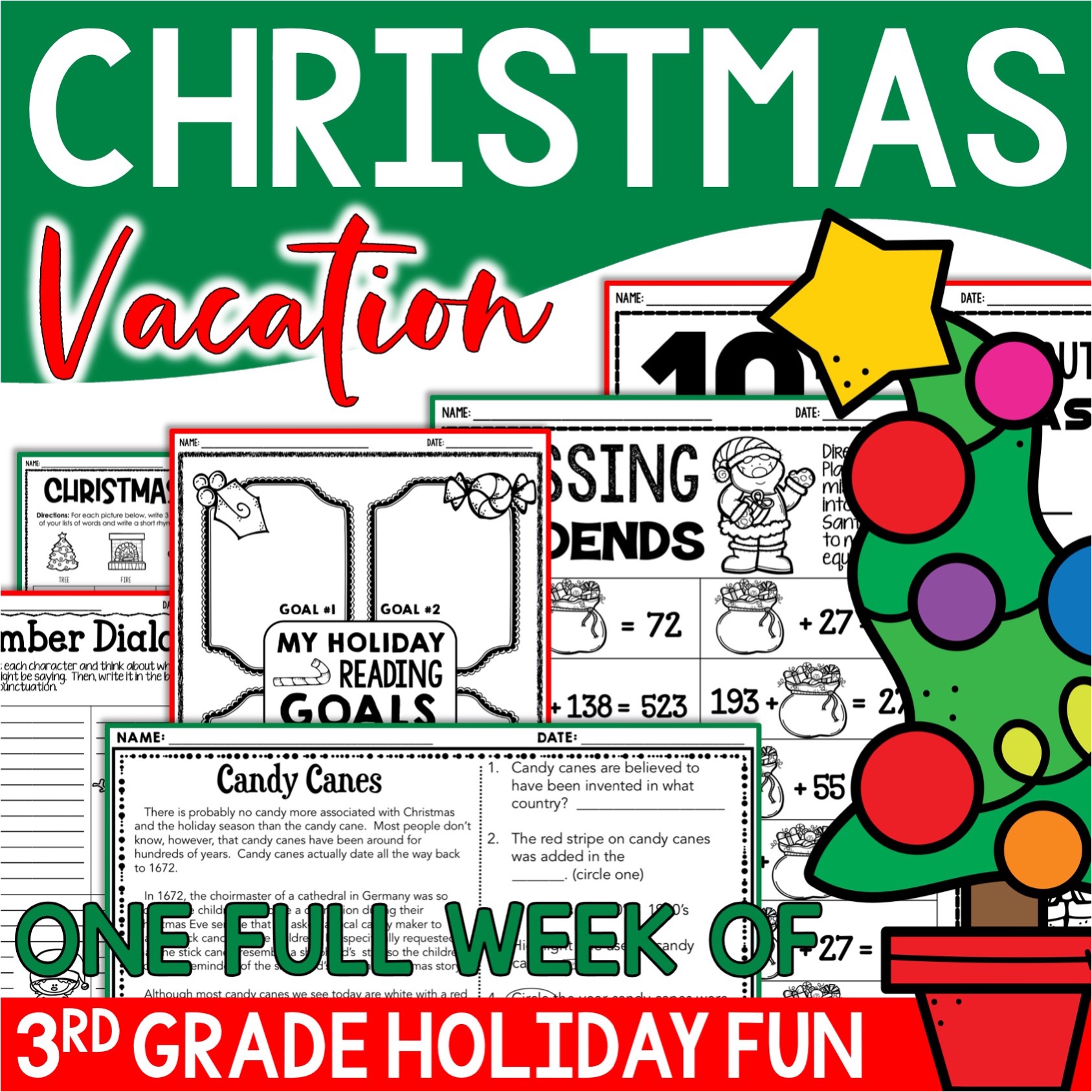 A great and fun way to spiral some of those key concepts that are taught and reinforced throughout 3rd grade, Christmas Vacation comes with resources, activities and printables in each of the following areas!
