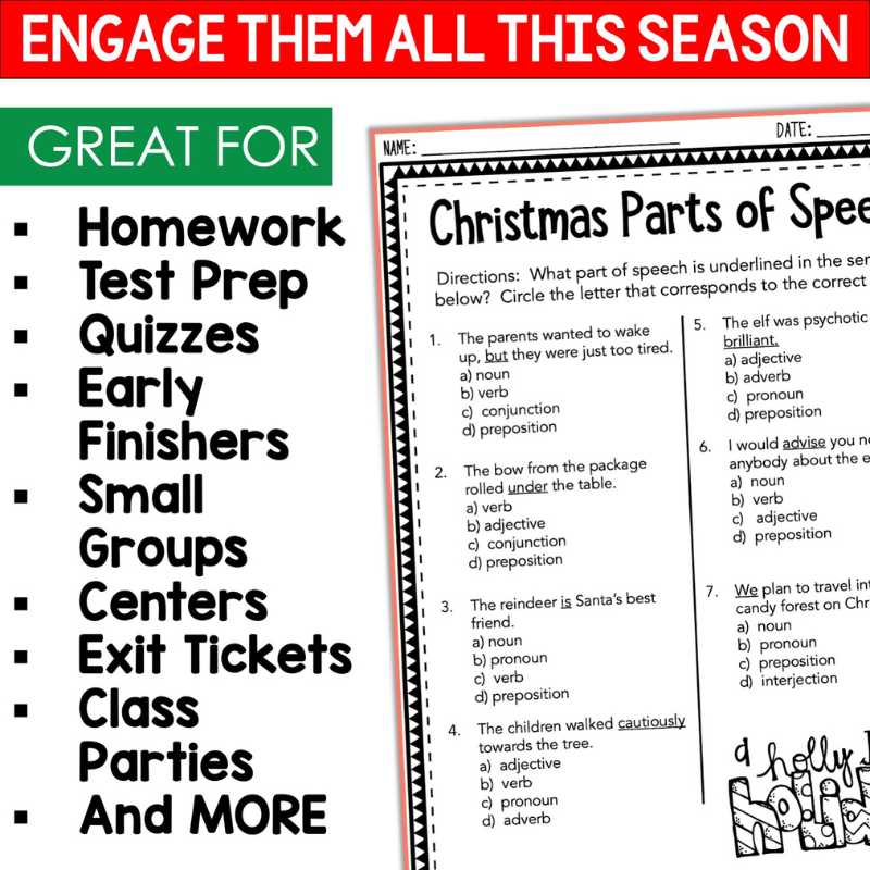 Christmas Holiday Grammar comes with 10 Parts of Speech Printables that are perfect to use for quizzes, homework, test-prep, early finishers and so much more this holiday season. This collection comes with 10 basic Christmas holiday themed printables perfect for helping kids practice and review those highly tested language standards.