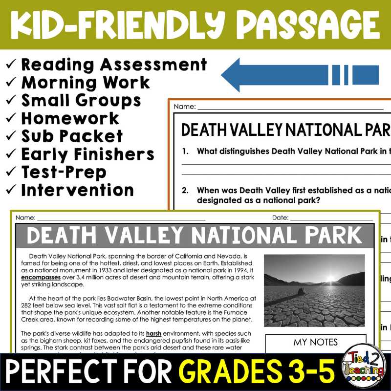Are you teaching your students about our national parks? This Death Valley National Park Reading Passage Pack is the perfect addition to any elementary classroom! It includes a fascinating reading passage all about Death Valley National Park, along with SIX engaging reading response activities to help students retain what they’ve learned.