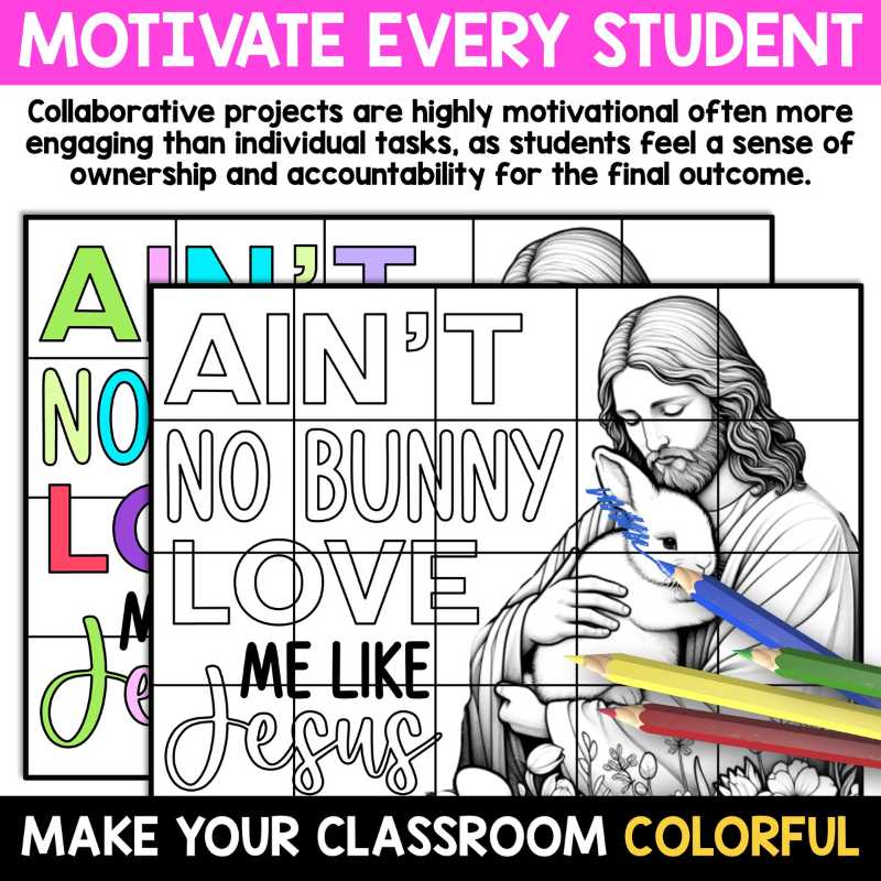 Are you ready to celebrate the Risen Savior this Easter? Celebrate the Easter holiday with your students with this beautiful and fun No Bunny Loves Me Like Jesus collaborative coloring poster! As you get ready for Easter, teach your students the value of teamwork and that we are all beautiful together!