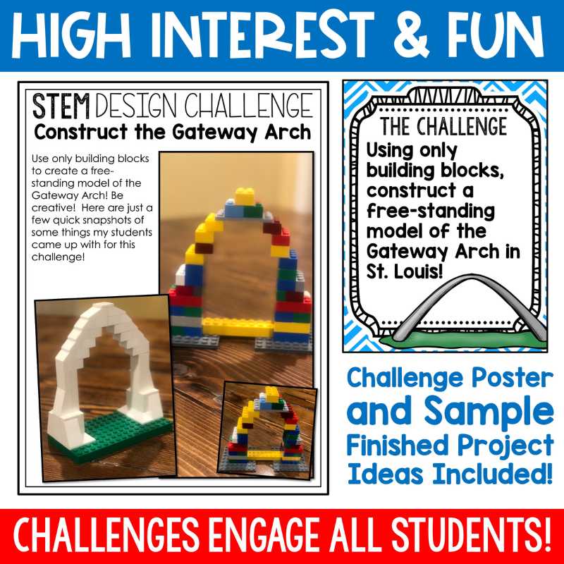 STEM challenge activities are so much fun. But, finding the time to incorporate design challenges into your curriculum can be difficult. The Gateway Arch Design Challenge is part of the STEM Across America with CLOSE READING series. It seamlessly allows you to tie together the curriculum by giving you rigorous text dependent questions that go with a high interest reading passage in addition to the fun STEM activity! Study America’s National Landmarks and let the STEM adventure begin!