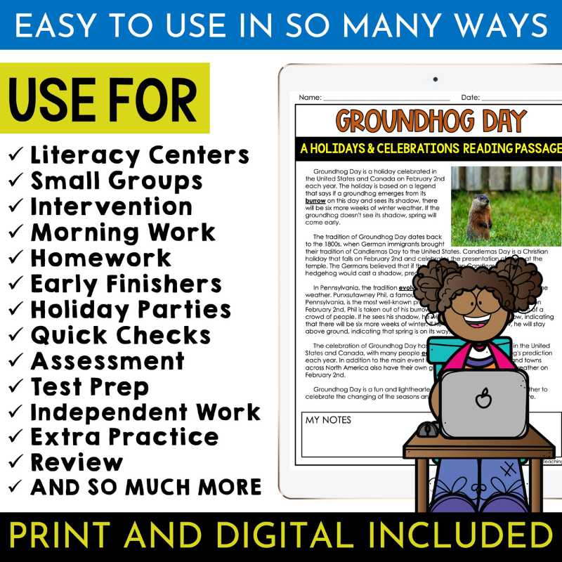 This print and digital Groundhog Day reading comprehension passage is a great way to maintain the rigor in your classroom while celebrating this special day with your students. Designed specifically for 3rd-5th students, this reading passage is a great way to give your students opportunities to practice their reading comprehension skills, while gaining valuable knowledge about this important holiday.