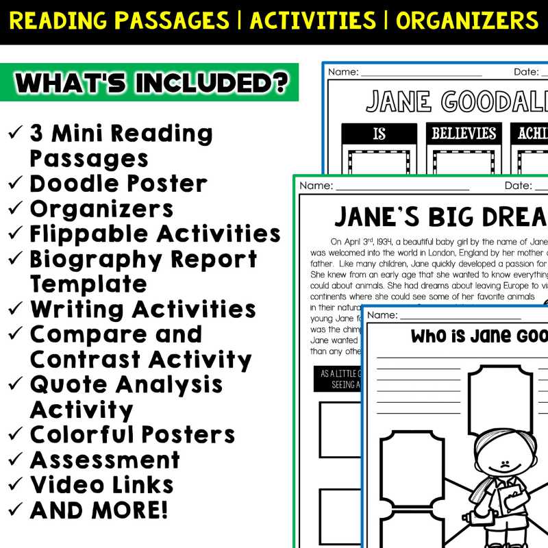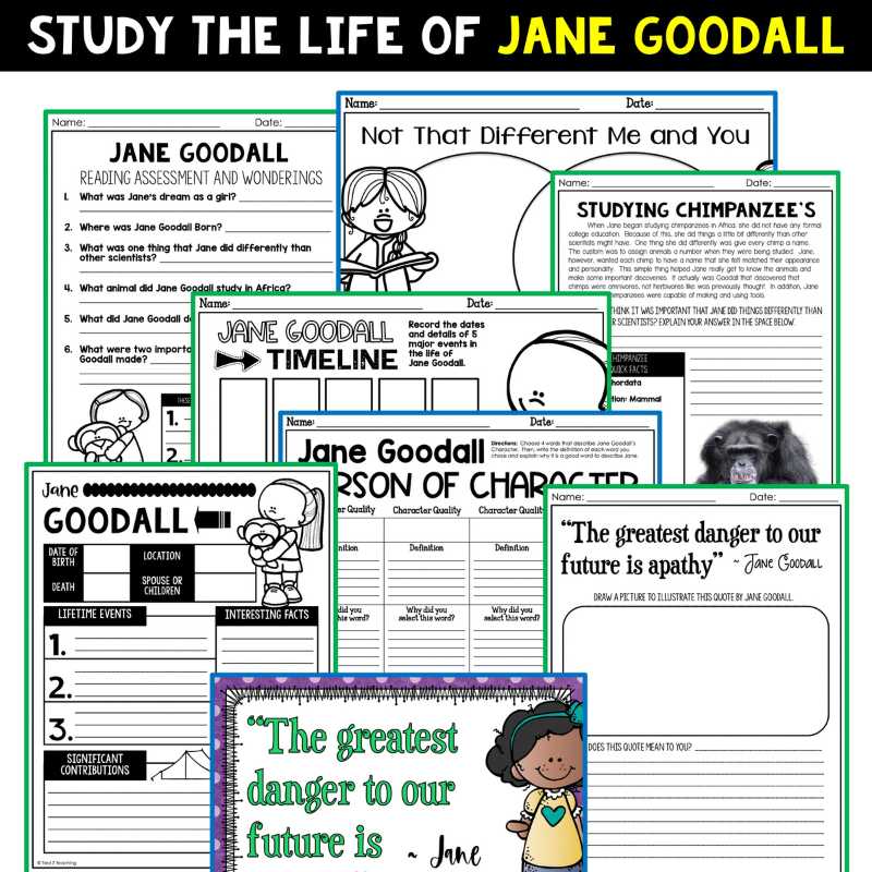 Have your students been asking the question, Who is Jane Goodall? Use this Jane Goodall Mini Biography Unit to help you study and organize your learning about the world’s foremost expert on chimpanzees. Included in this mini-unit you will find short reading passages, organizers, interactive notebook foldable activities, writing activities, posters, video links, and more. Your students will love studying the life of this amazing woman: Jane Goodall.