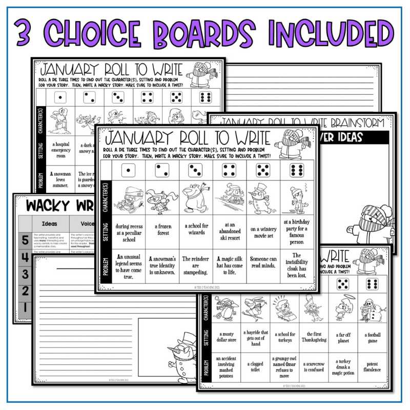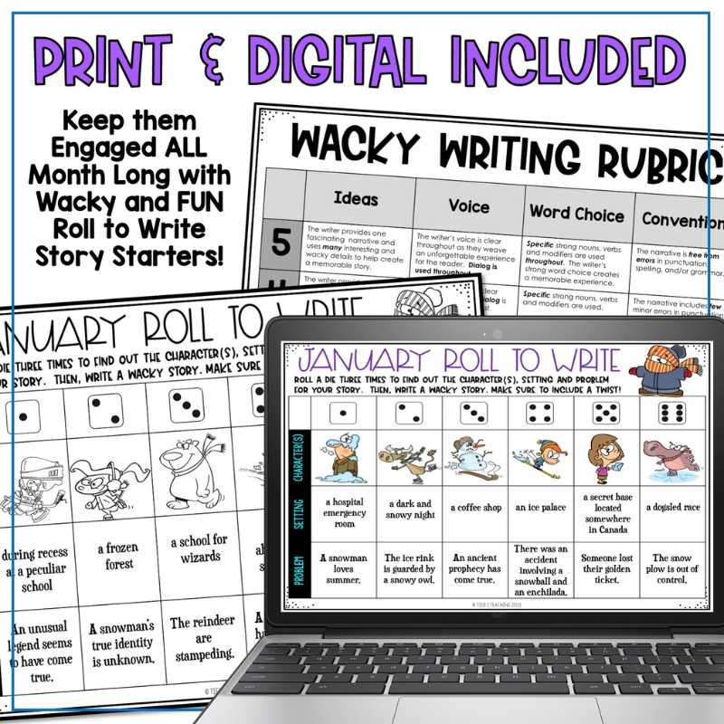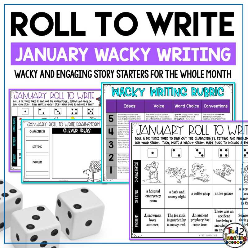 This Winter and January themed roll to write pack is sure to have your students writing with a smile this month! Use Wacky Writing Roll to Write story starters to help your students develop a love of writing during the winter months. With Wacky January Roll to Write narrative writing activities your students will beg to move on to writer’s workshop all January long! You and your students will laugh till you cry at the creative narratives your students will write. Maintain high rigor as you spiral through your writing instruction throughout the month! Students and teachers across the country have fallen in love with Wacky Writing!