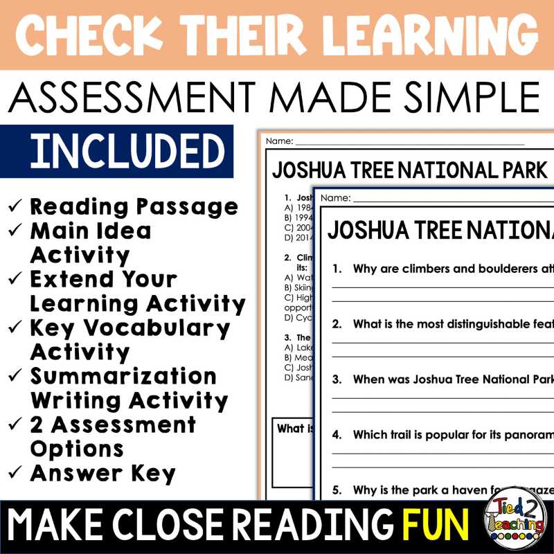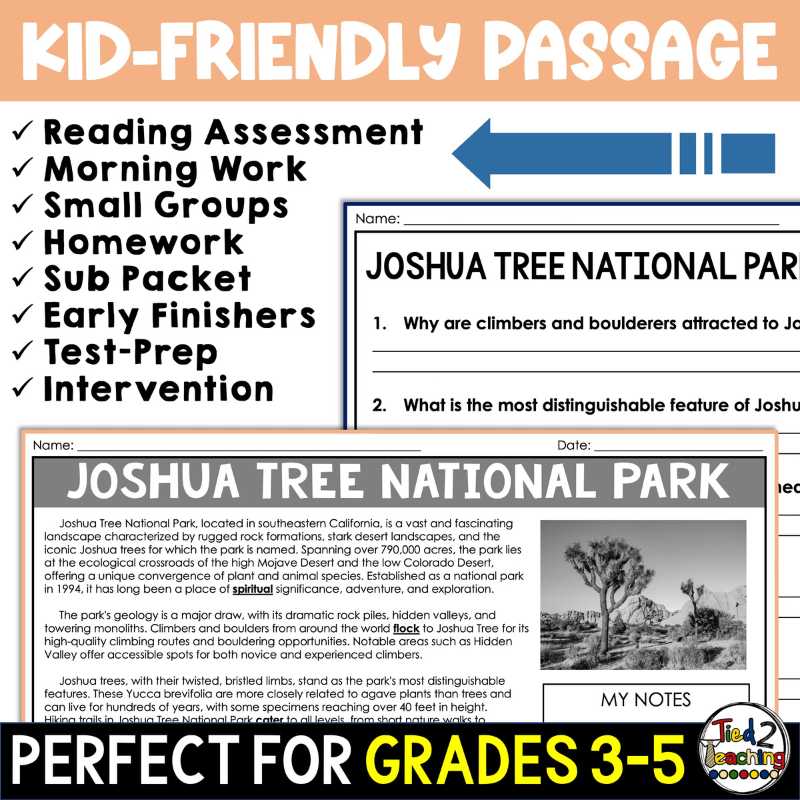 Are you teaching your students about national parks? This Joshua Tree National Park Reading Passage Pack is the perfect addition to any elementary classroom! It includes a fascinating reading passage all about Joshua Tree National Park, along with SIX engaging reading response activities to help students retain what they’ve learned.