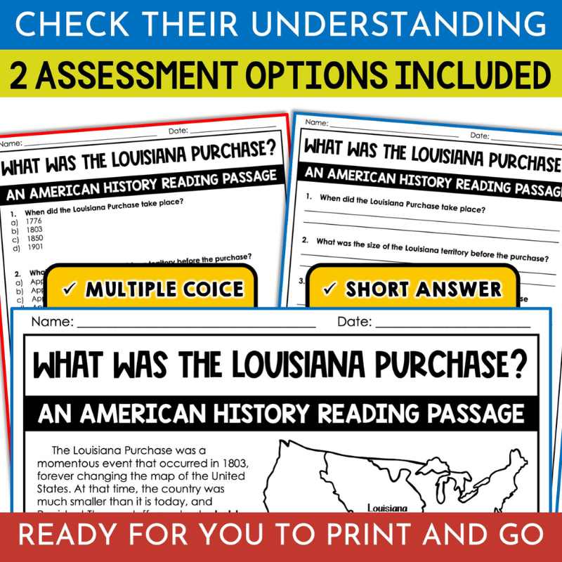 Elevate your classroom experience with this Louisiana Purchase Passage, enhancing your students’ understanding of this significant chapter in American history while fostering their literacy skills. Seamlessly merge social studies and reading, creating a dynamic and enriching learning environment for your upper elementary school students.