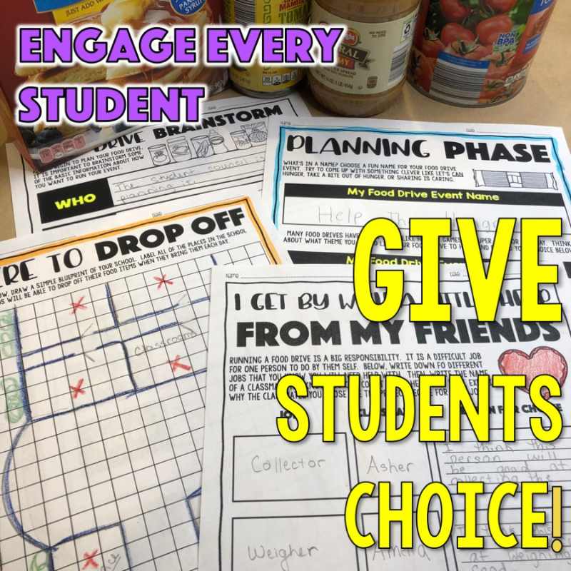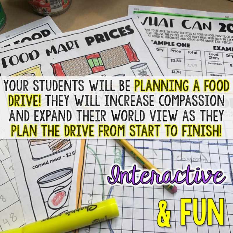 Thanksgiving activities and instilling compassion in your students are so much fun when you dive into NO PREP Project based learning. Using Project Based Learning in your classroom is the perfect way to have your students incorporate reading, writing, math, critical thinking, and problem solving skills in a fun, real-life context. In this PBL unit, students will plan all the aspects of a school food drive! (You do not need to actually host a Food drive to complete this learning experience) As they prepare for the food drive, they will need to make important decisions about the the format of the food drive, advertising the drive, collecting the food, and MORE!