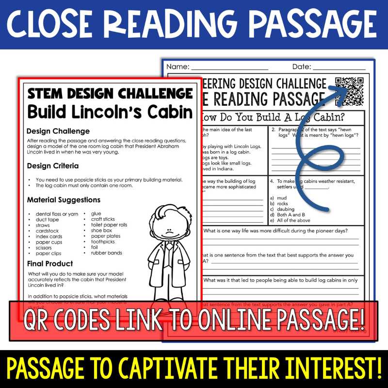 STEM challenge activities are so much fun. But, finding the time to incorporate design challenges into your curriculum can be difficult. The Presidents Day Lincoln’s Cabin Design Challenge is part of the STEM with CLOSE READING series. It seamlessly allows you to tie together the curriculum by giving you rigorous text dependent questions that go with a high interest reading passage IN ADDITION to the fun STEM activity! Watch your kids faces LIGHT UP as they put their thinking caps on and let the STEM adventure begin!