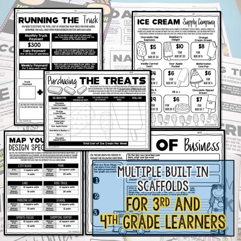 Using Project Based Learning in your classroom is the perfect way to have your students incorporate reading, writing, math, critical thinking, and problem solving skills in a fun, real-life context. In this PBL unit, students will start their own ice cream truck business! As they prepare for their business venture, they will need to calculate the cost of running the truck, purchase ice cream and other supplies, map their route, and most importantly estimate their profit!