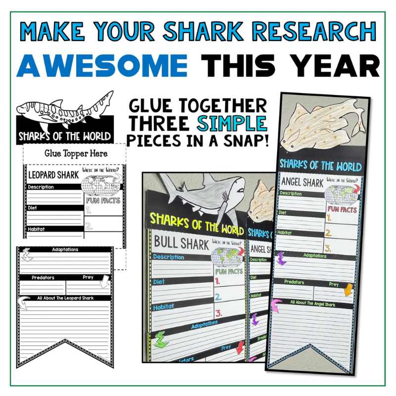 In addition to being excellent informational organizers for your students, these shark pennant banners are great to use for bulletin boards or hallway displays.