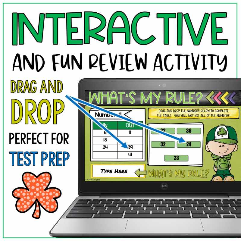 Your students will love this engaging and interactive St. Patrick’s Day math activity that will help them find number patterns using addition and subtraction input/output function tables. Included you will receive a set of digital and interactive math activities that includes 28 different function tables. In addition, if you would like a fun ready-to-go individual math center or exciting review activity to get your students up and moving around the classroom, I have also included a set of 28 fun addition and subtraction function table task cards that are sure to captivate your students attention!