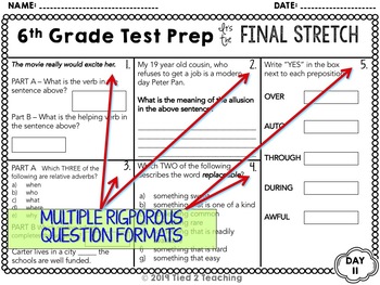 Final Stretch LANGUAGE TEST PREP for 5th grade is a part of the comprehensive Smarter Design Test Prep Series that will have your students reaching new heights in their academic achievement. Final Stretch has 4 weeks (20 days) of carefully designed, spiraled language test-prep review sheets. Each printable is specifically crafted to expose kids to the look, “feel,” and rigors of most states’ standardized language tests. It’s THE FINAL STRETCH! You’ve got this!
