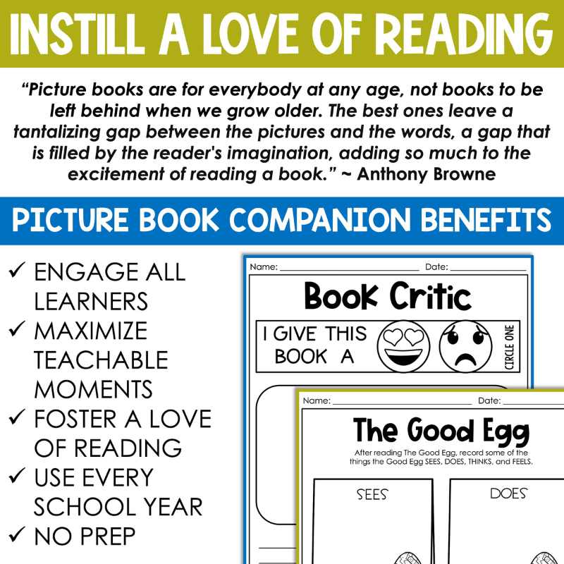 The book The Good Egg by Jory John and Pete Oswald is a wonderful story to read aloud with your students this year. If you are reading The Good Egg with your students this year you will love this picture book companion. It comes with a variety of tools to engage your students and help you maximize teachable moments as you explore this beautiful story.