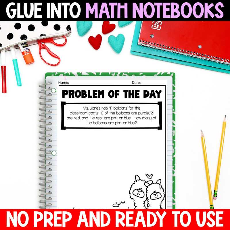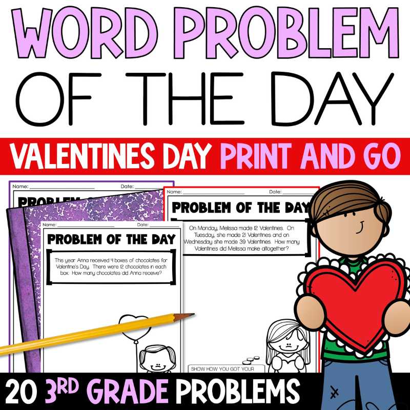 Each Valentines Problem of the Day Activity sheet simply asks students to solve a 3rd grade word problem using words, numbers, or pictures.