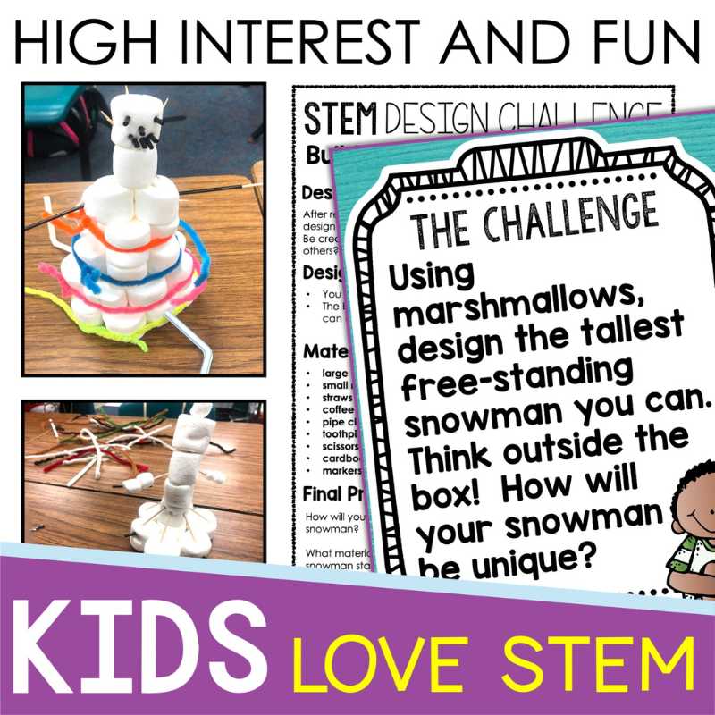 Winter STEM challenge activities are so much fun. But, finding the time to incorporate design challenges into your curriculum can be difficult. The Marshmallow Snowman Design Challenge is part of the STEM with CLOSE READING series. It seamlessly allows you to tie together the curriculum by giving you rigorous text dependent questions that go with a high interest reading passage in addition to the fun STEM activity! Grab a bag of marshmallows and let the STEM adventure begin!