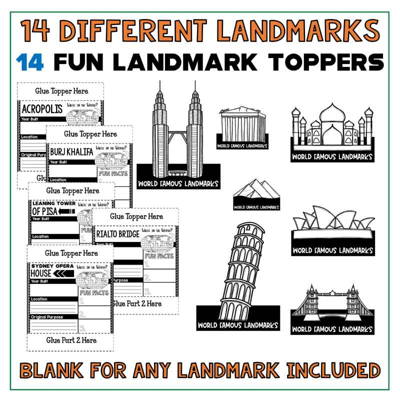 In addition to being excellent informational organizers for your students, these landmark pennant banners are great to use for bulletin boards or hallway displays.