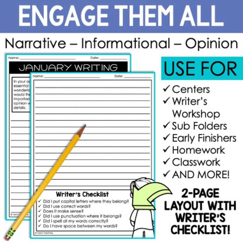 Each month will include 20 different prompts that come ready to go! In addition, each fun prompt comes with a simple writer’s checklist!